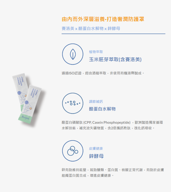 其中含有Hydroxyproline二肽、三肽的膠原蛋白則更是利於人體吸收的關鍵。