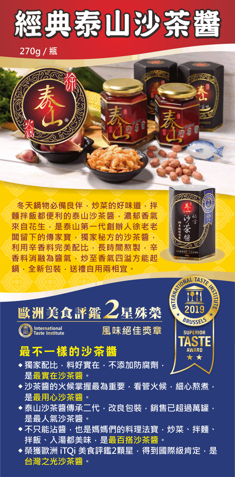 ⭐⭐榮獲2019食品米其林ITQI風味絕佳二星認證,成為台灣之光沙茶醬